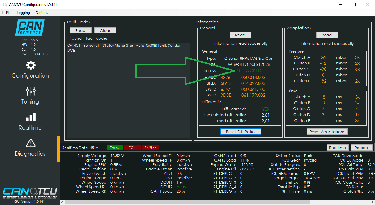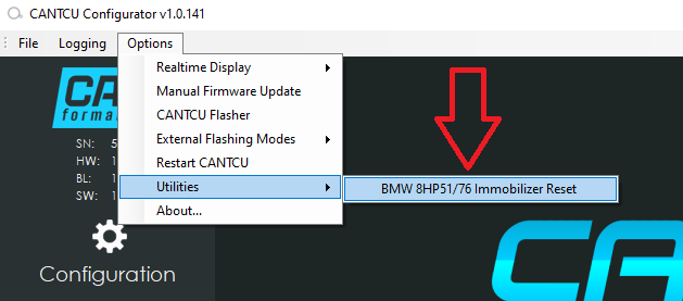 CANTCU is able to reset the immobilizer in the BMW 8HP51/76 transmission. An EEPROM readout from the transmission (using a 3rd party tool) is required.