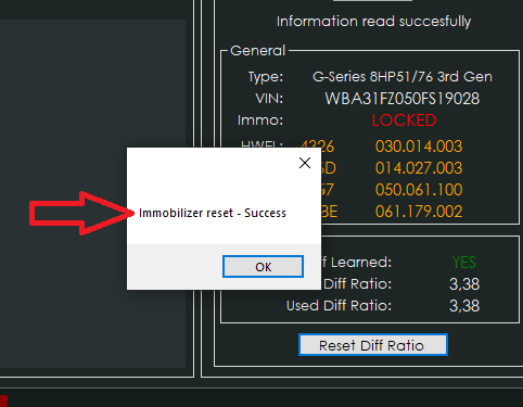 2. Go to Utilites → BMW 8HP51/76 Immobilizer Reset and select a EEPROM-file. If the file is valid, the reset carries on.